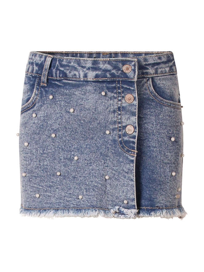 Helemaal fan van skorts! Deze leukerd heeft een speelse rafelrand en trendy parelstuds op de voorkant. Met deze shorty ga jij hip de zomer tegemoed!