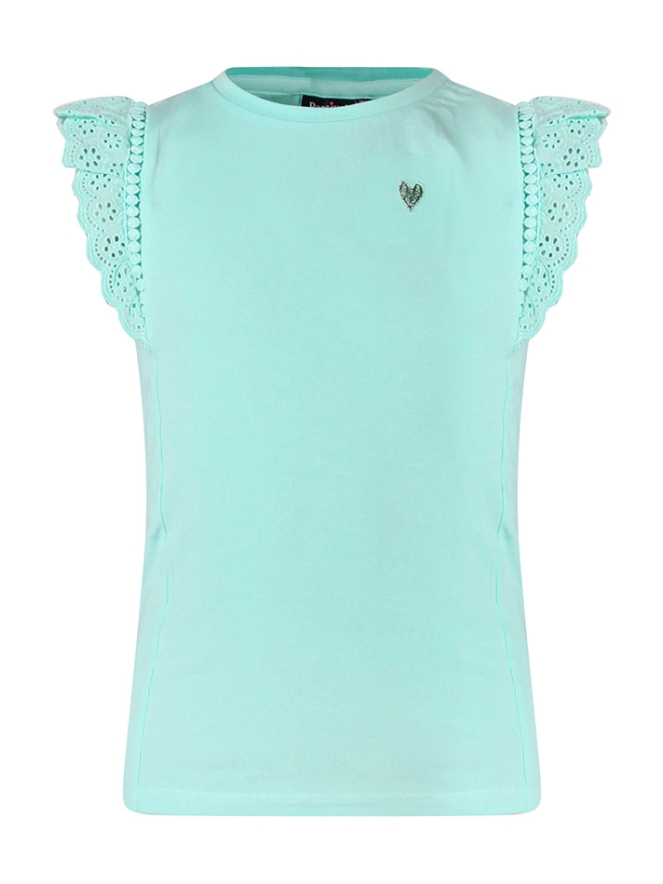 Dit lieve hemdje voor meisjes combineert speelse details met een elegante uitstraling. De broderie op de schouders geeft een verfijnde touch, terwijl het hartjesborduur op de voorkant het hemdje een charmante, vrolijke uitstraling geeft.