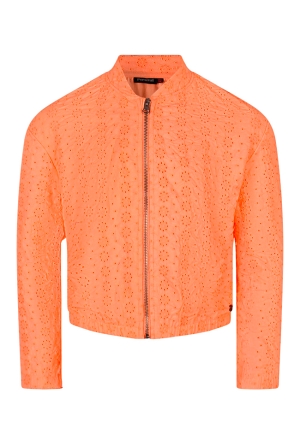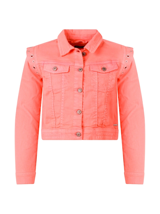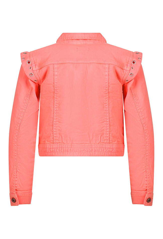 Geef elke outfit een stoere én speelse touch met dit prachtige spijkerjack van Persival. Dit meisjesjack is uitgevoerd in een frisse roze tint of opvallend fel koraal. Wat dit jasje écht bijzonder maakt, is de stijlvolle ruche op de schouders. In de ruche zijn subtiel ringen verwerkt, wat zorgt voor een trendy en unieke uitstraling. Een echte eyecatcher!