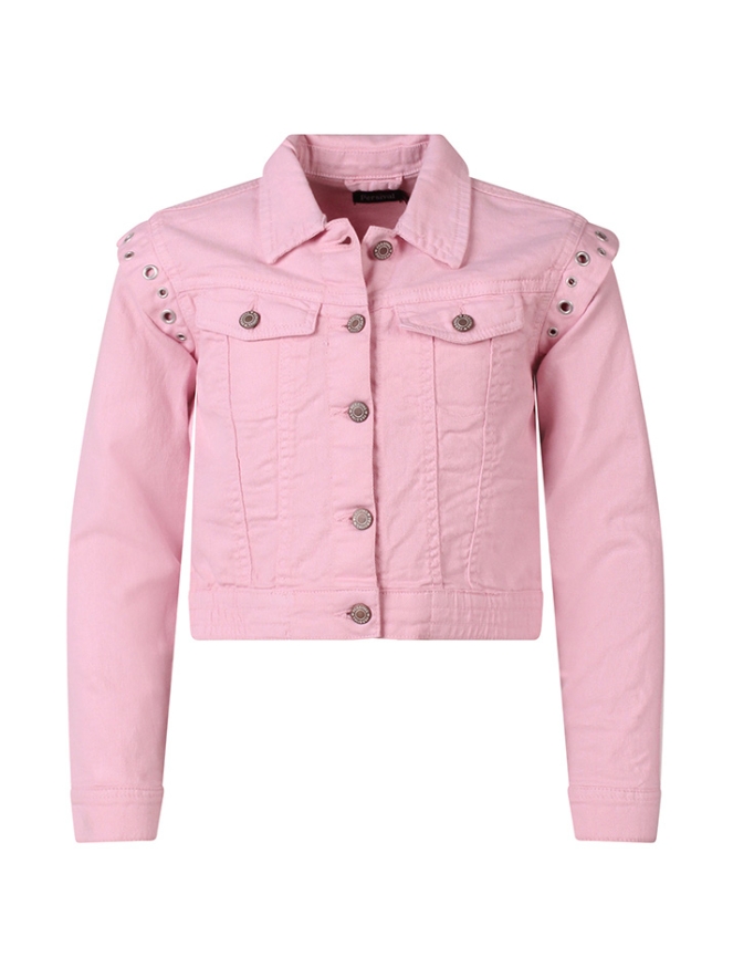 Geef elke outfit een stoere én speelse touch met dit prachtige spijkerjack van Persival. Dit meisjesjack is uitgevoerd in een frisse roze tint of opvallend fel koraal. Wat dit jasje écht bijzonder maakt, is de stijlvolle ruche op de schouders. In de ruche zijn subtiel ringen verwerkt, wat zorgt voor een trendy en unieke uitstraling. Een echte eyecatcher!