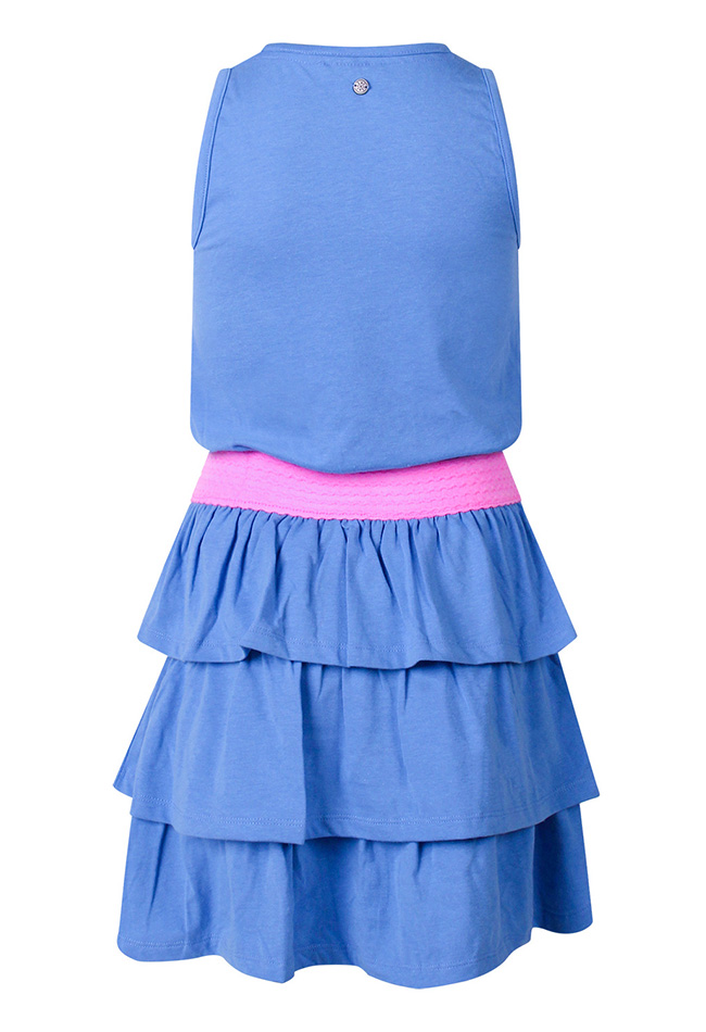 Dit mouwloze jurkje is uitgevoerd met een vrolijk strokenrokje dat zorgt voor een zwierig en luchtig effect bij elke beweging. De opvallende tekst I donâ??t care is afgewerkt met glinsterende pailletten, wat het jurkje een trendy en eigenwijze uitstraling geeft.