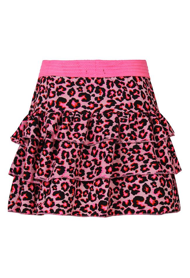 Geef elke outfit een speelse en trendy touch met dit vrolijke strokenrokje voor meisjes. Het rokje is uitgevoerd in een opvallend multicolor panterdesign, perfect voor kleine fashionistaâ??s die graag opvallen. De luchtige crinkle stof zorgt voor een speels gekreukt effect en maakt het rokje heerlijk comfortabel om te dragen. Dankzij de stroken valt het rokje soepel en zwierig.