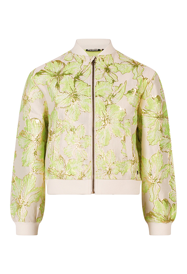 Dit meisjes bomberjack heeft een trendy bloem/lurex print en ribboorden voor een comfortabele pasvorm. Het bombermodel geeft een stoere, modieuze look en is ideaal om te combineren met een jeans voor een complete outfit.