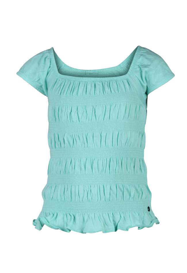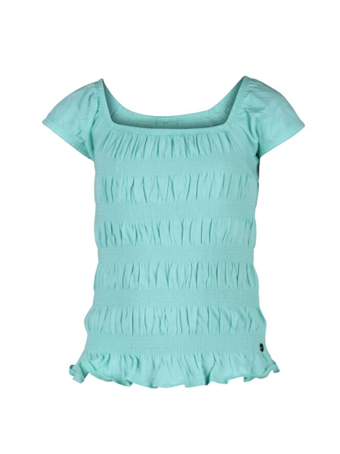 Smock top van Persival. De top heeft een smock body en pofmouwtjes. De onderkant heeft een roezeltje. Materiaal: 100% katoen. Wassen op 30 graden, niet bleken, niet in de droger, kan gestreken worden.