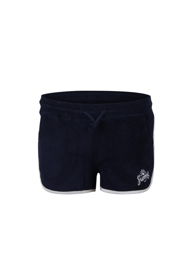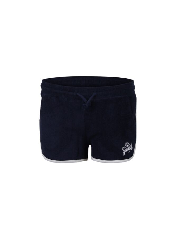 Badstof shorts van Persival. De shorts hebben een sportieve look met witte bies. De shorts zijn van badstof. Materiaal: 70% katoen, 30% polyester. Wassen op 30 graden, niet bleken, niet in de droger, kan gestreken worden.