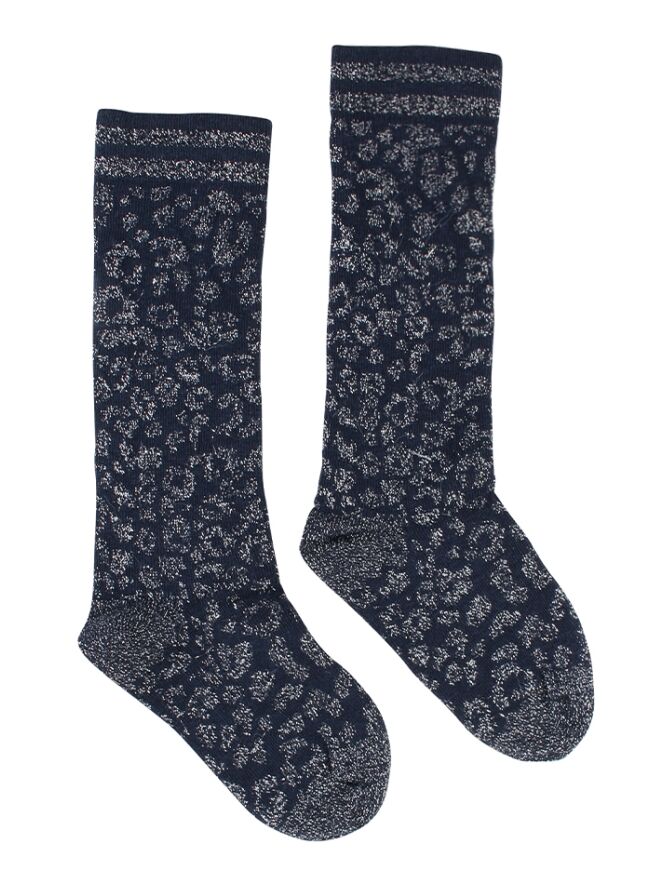 2 paar kniekousen van Persival. 1 paar met glitter animal print en het andere paar is effen met glitter. Materiaal: 78% katoen, 20% polyamide, 2% elasthan. Wassen op 30 graden.
