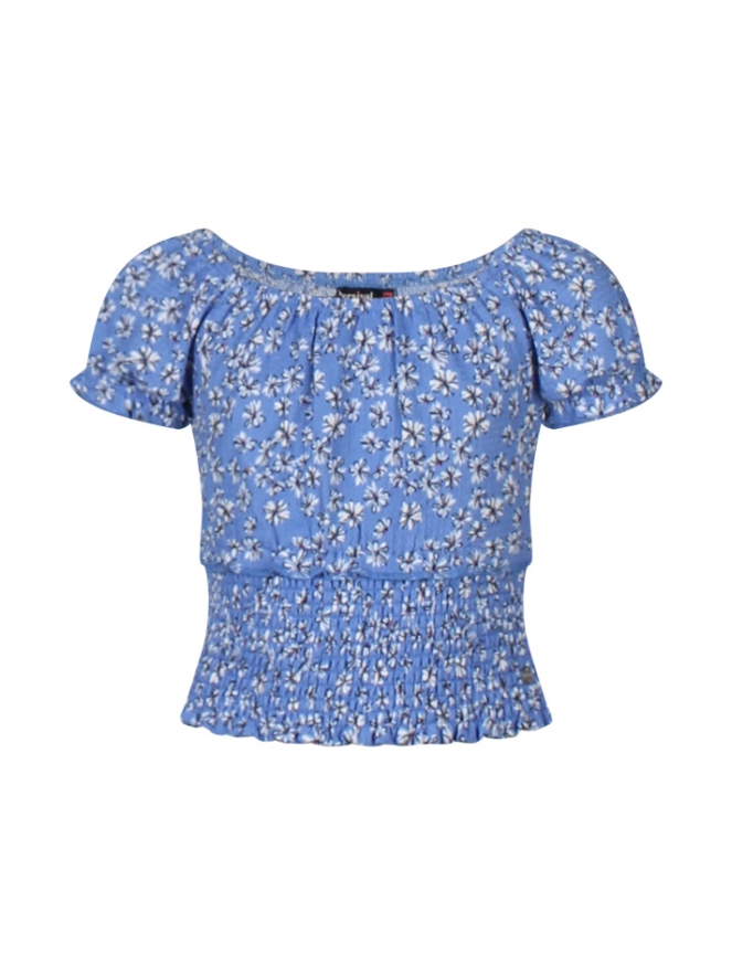 Deze top met bloemenprint heeft powmouwen en rond de middel een elastieken crincle band. In dezelfde print is er ook een jurkje, short, rokje en legging verkrijgbaar. Art.nummers Jurkje Z80009 Short Z80010 Rokje Z80008 Legging Z80164