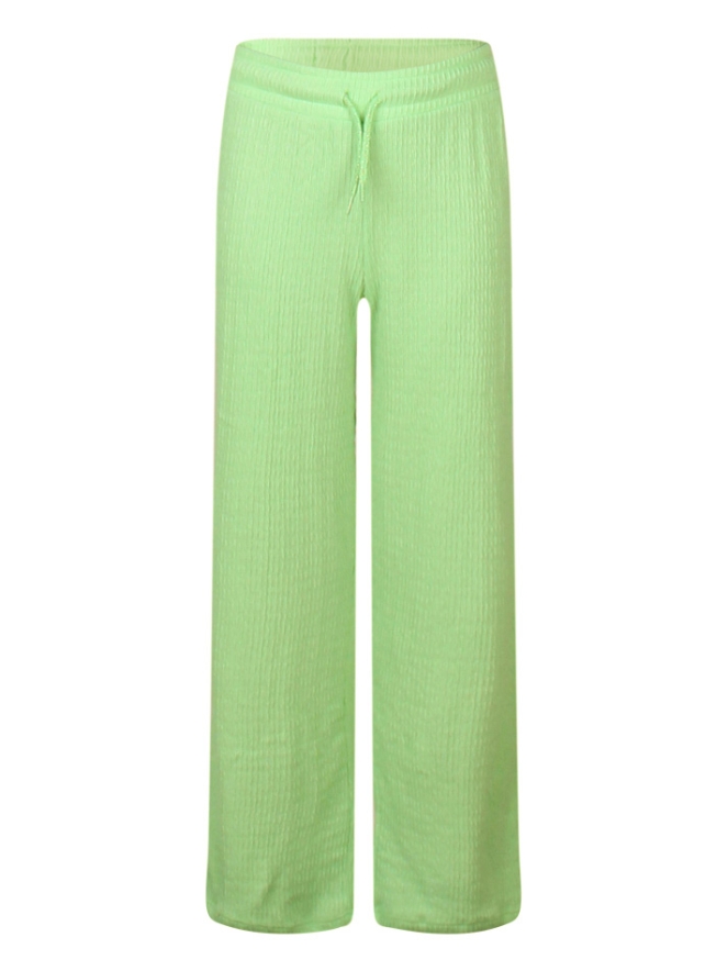 Deze broek heeft rechte pijpen en een sierkoord aan de tailleband. Gemaakt van een relief stof. In dezelfde stof is er ook een leuke top verkrijgbaar met nr. Z80066
