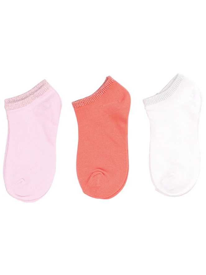 Deze sneakersokken zitten verpakt per 3, zijn in effen kleur maar hebben wel een glittertje in de boord.