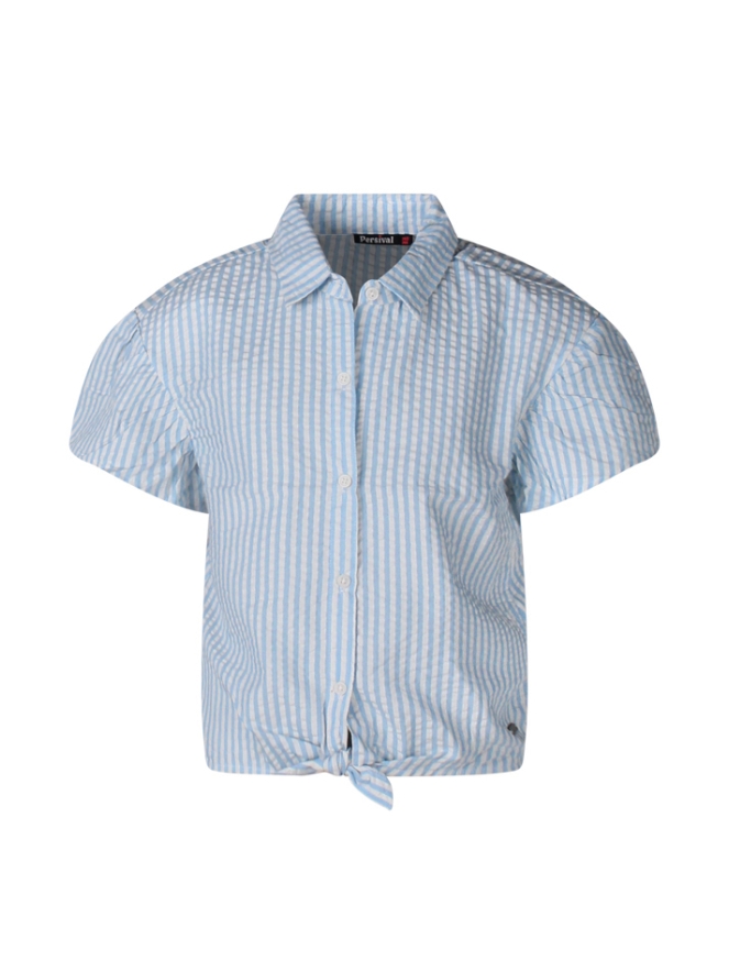 Deze vrolijke blouse heeft een stijlvolle streepprint en speels uitlopende korte mouwen. Het knoopdetail aan de voorkant geeft een trendy touch, terwijl het elastiek op de rug zorgt voor een mooie aansluitende pasvorm.