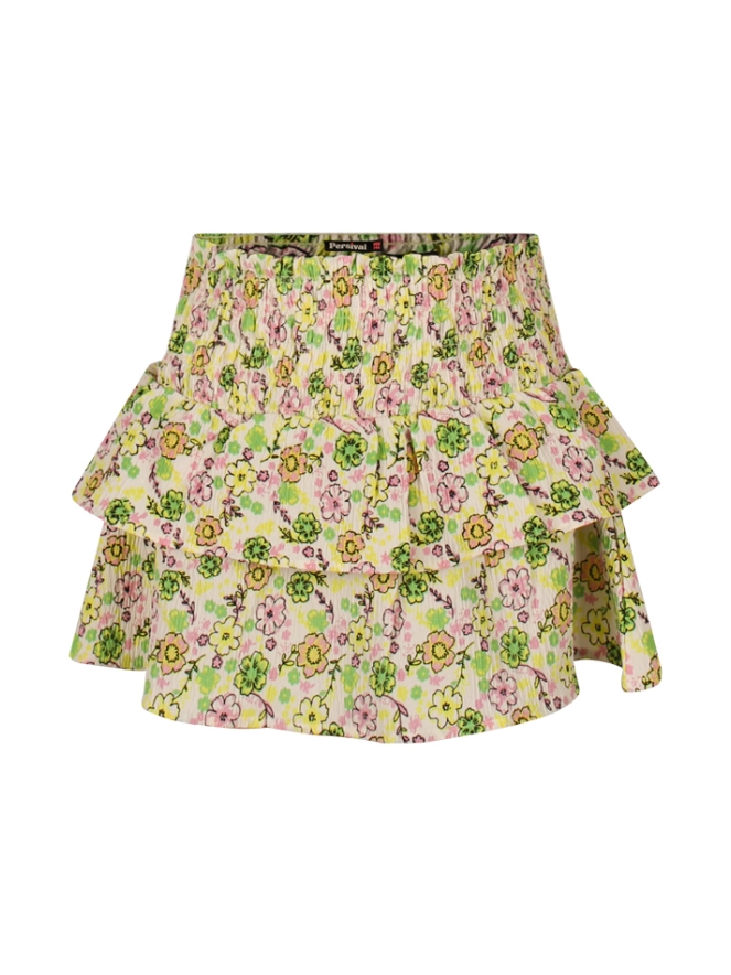 Zomers bloemen stroken rokje van crincle stof. Dit rokje heeft een hoge elastische smock tailleband en sluit daarom fijn aan. Leuk te combineren met T-shirts of de bijpassende blouse met art.nr. Z90046