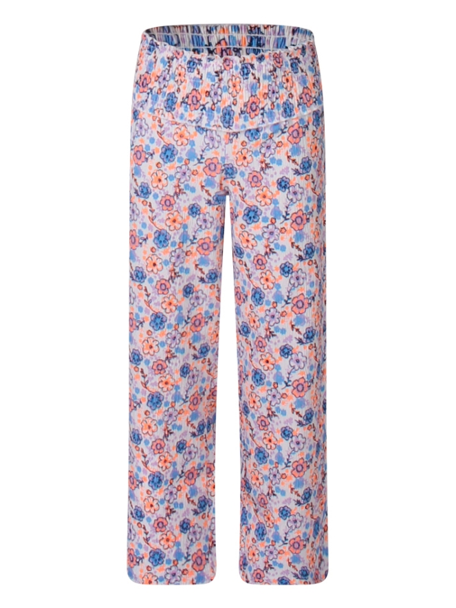 Leuke zomerse luchtige broek van crincle stof met vrolijke bloemenprint! Deze broek heeft geen zakken maar de hoge elastische tailleband maakt dat helemaal goed! Liever een co-ord set? We hebben een bijpassende blouse met korte mouw voor erbij. Art.nr. Z90046