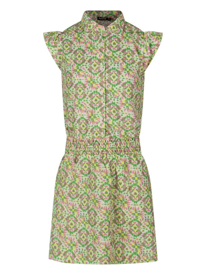 Met dit jurkje ben je helemaal klaar voor de zomer! Wij worden helemaal blij van de vrolijke kleurtjes. Dit jurkje heeft knoopjes tot de middel en een smockband in de middel. Leuke zomerse schoen eronder, eventueel spijkerjasje erover en ready to rumble!!