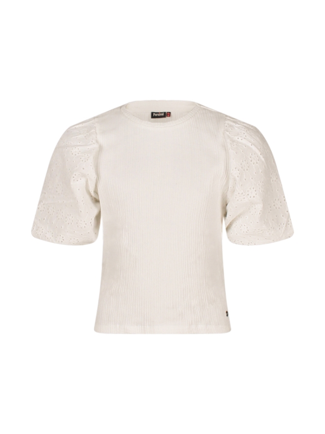 Fraaie basic top en toch net even anders! Met broderie ballonmouwen en een fijne rib in het lijfje. Geen prints, gewoon hele leuke details. Welke kleur kies jij?