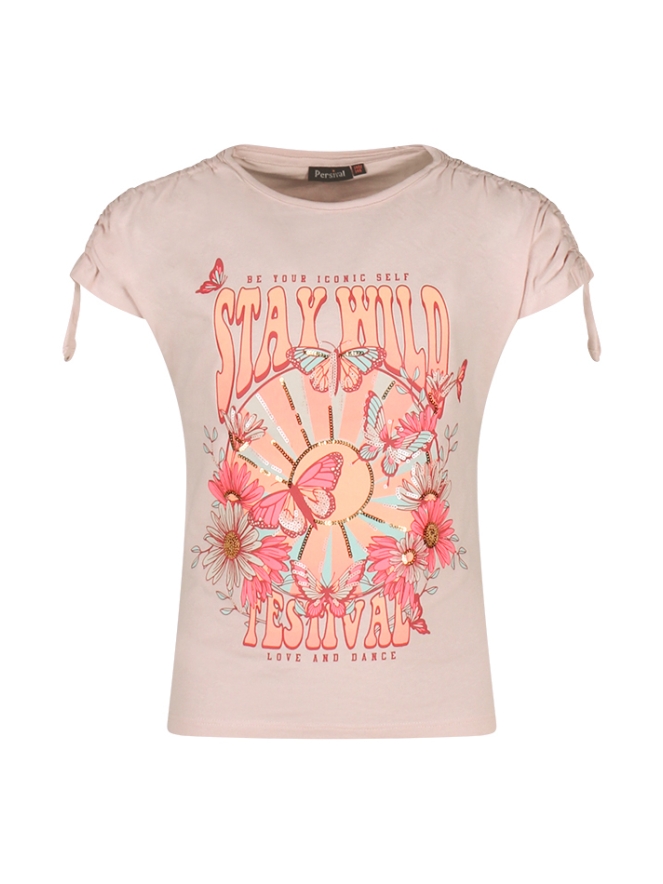 Stay Wild Festival Vibes! Dit vrolijke trendy shirtje laat jou stralen tijdens je favo dansje! Met een leuk optrekkoordje op de schouder en een mooie print voorop met glimmende paillettjes.