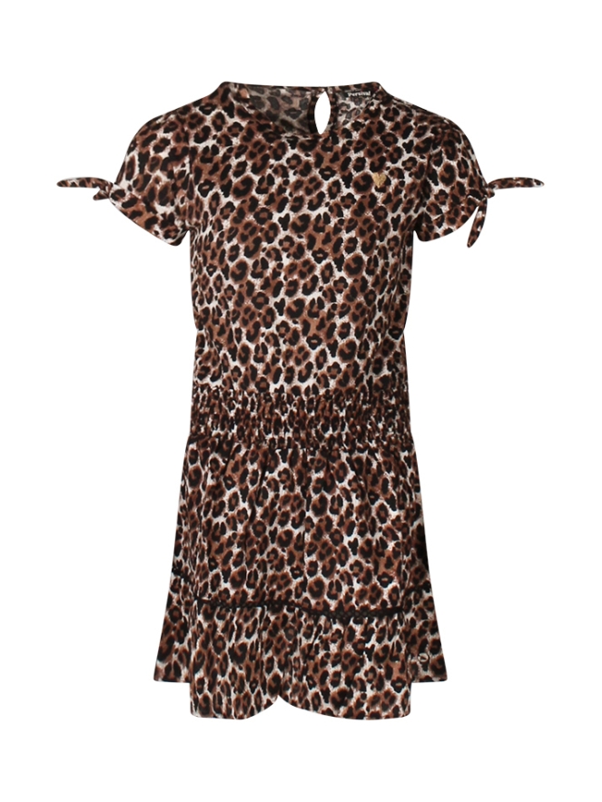 Roarrrr! Dit panterjurkje met strikjes op de mouw en een smockband in de taille is de ideale zomerjurk door de dunne stof en de gevaarlijk leuke print.