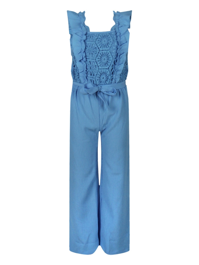 Hoe leuk is deze jumpsuit? Deze zomervariant want zo zonder mouwen is hij top voor zonnig weer heeft een mooie gehaakte bloemen bovenkant met ruche schouderbandjes. Nog iets fris? Draag er dan een spijkerjasje over en je bent super stylisch verantwoord! Appeltje eitje :-)