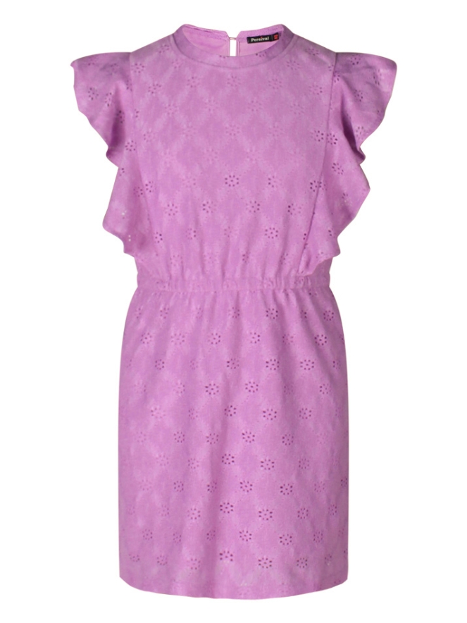 Deze mouwloze zomerjurk is een must-have voor zonnige dagen! De ajourstof en schattige ruches op de schouders geven een speelse en lieve uitstraling.