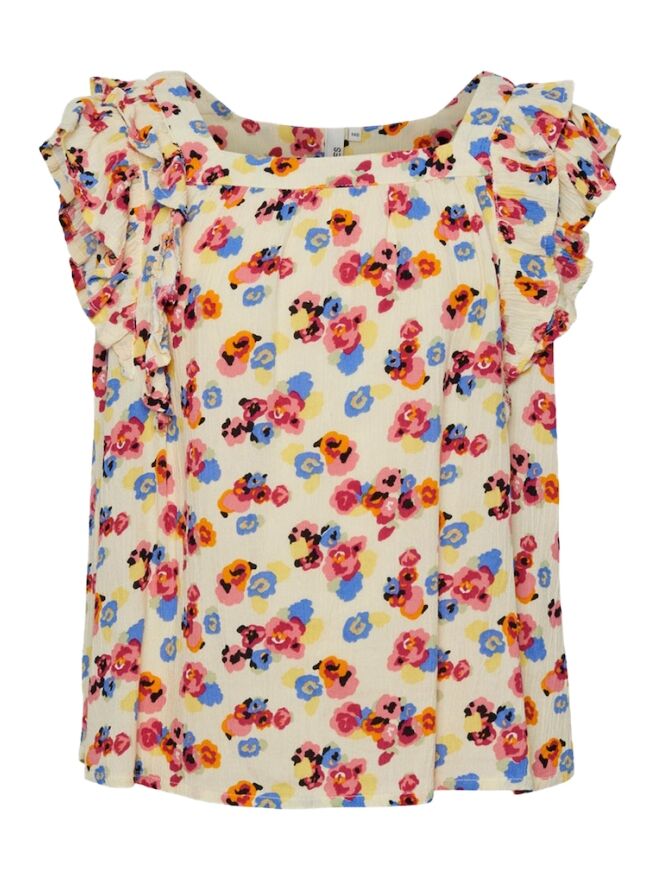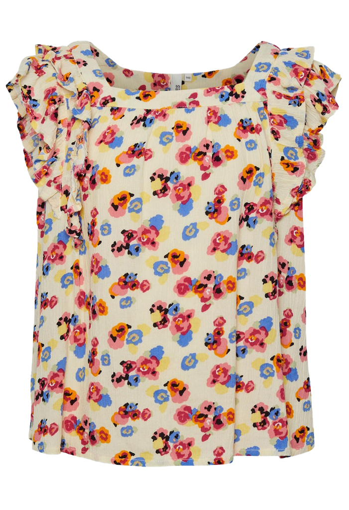 Topje van Little Pieces. Het topje heeft een ruche schouder detail en een all over bloemen print. Het topje valt losjes. Materiaal: 100% viscose. Wassen op 30 graden, niet bleken, niet in de droger, kan gestreken worden.