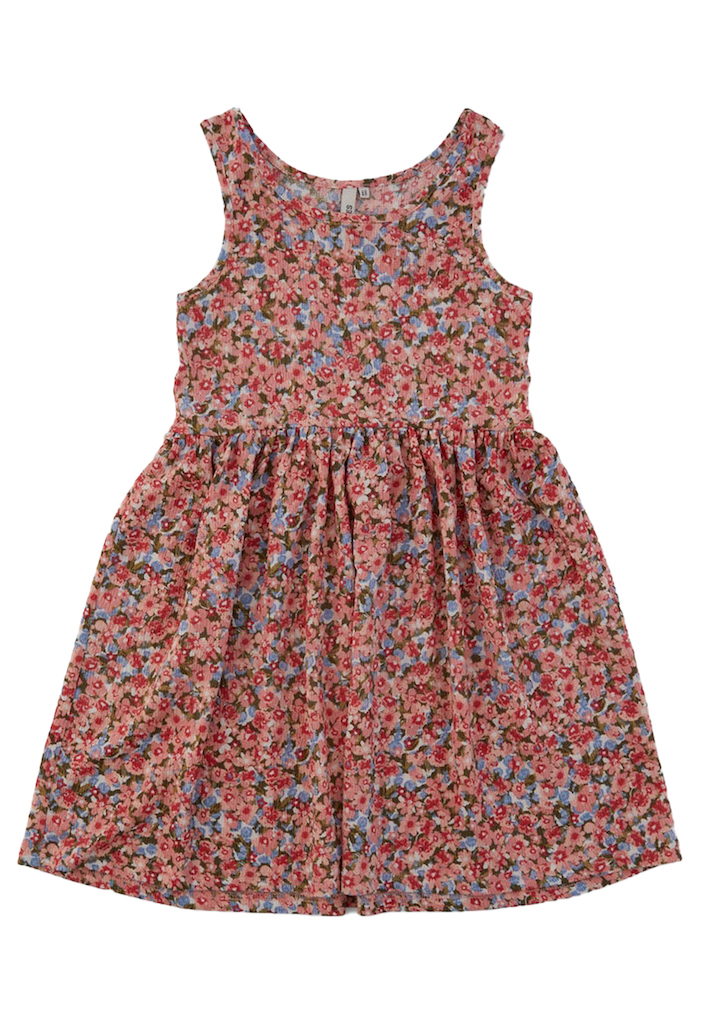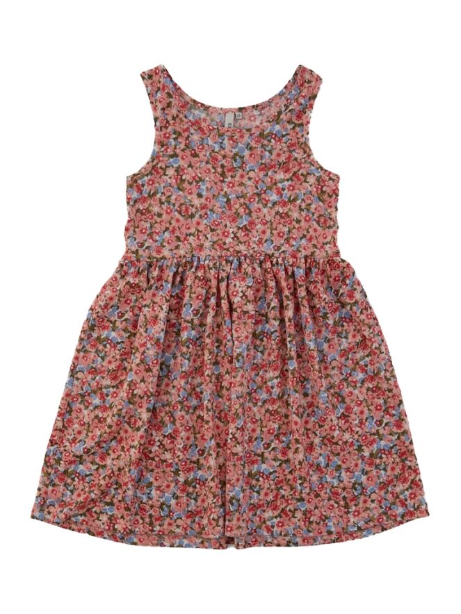 Jurkje van Little Pieces. Het jurkje heeft een babydoll model en een all over bloemen print. Materiaal: 74% polyester recycled, 25% polyester, 1% elasthan. Wassen op 30 graden, niet bleken, niet in de droger, kan gestreken worden.