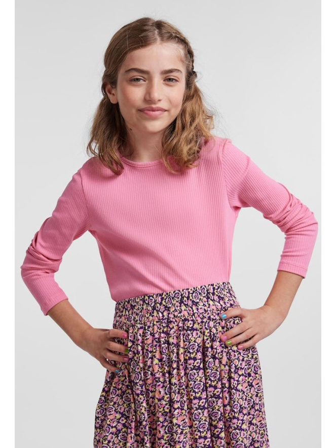 Comfortabel T-shirt met lange mouwen, gemaakt van fijne stretch ribstof. Een veelzijdig kledingstuk dat perfect is voor dagelijks gebruik en gemakkelijk te combineren is met verschillende outfits.