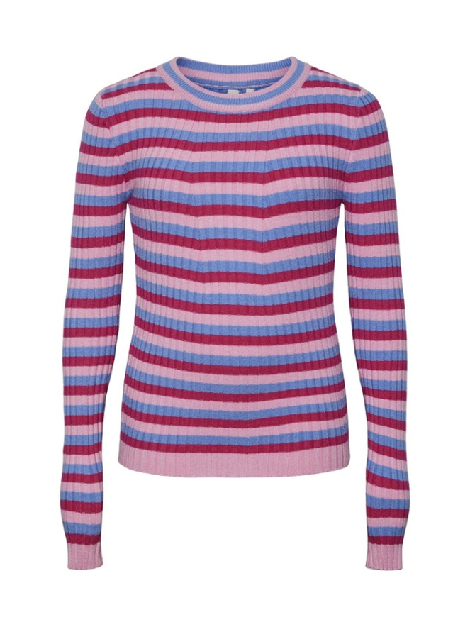 Gebreide rib top van Little Pieces. Deze top heeft een aansluitende pasvorm met lekker veel stretch, een ronde neklijn en lange aangesloten mouwen. Op de top zit een streep motief in de breedte met verschillende kleuren.