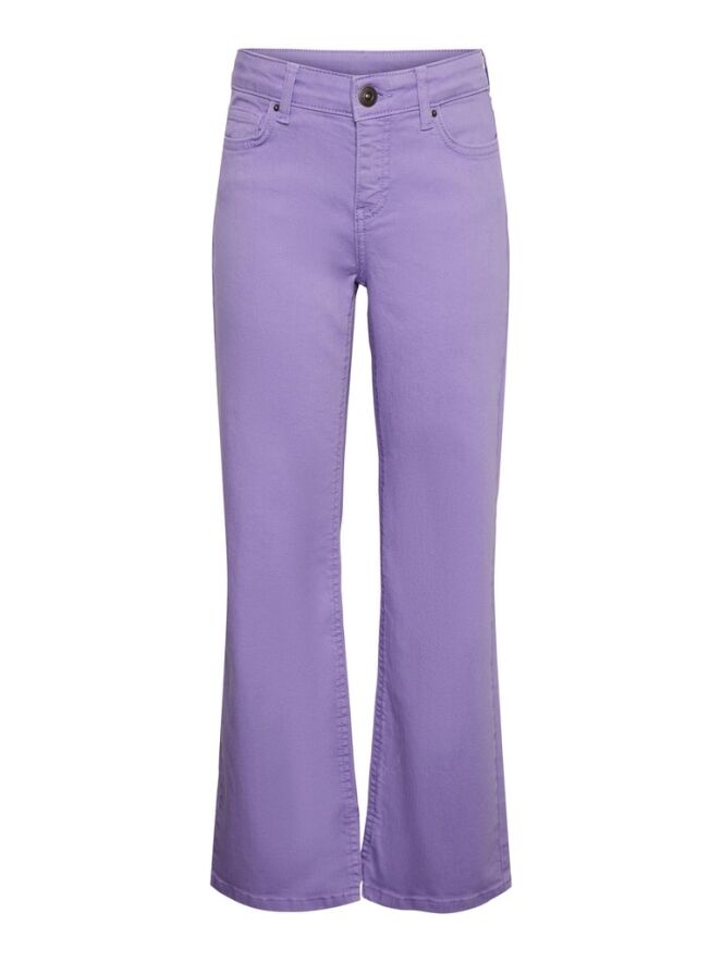 5-pocket flairjeans met in de tailleband een elastiek om de taille strakker te maken.