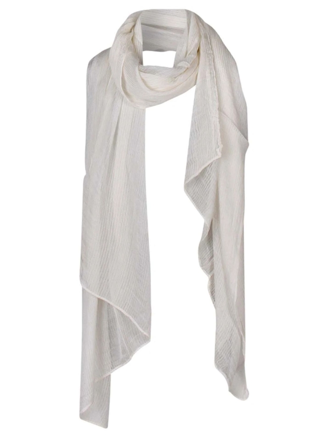 Zeer verfijnde dunne sjaal van viscose. Deze sjaal in nude kleur, offwhite of taupe heeft een afmeting van 75 x 200 cm.