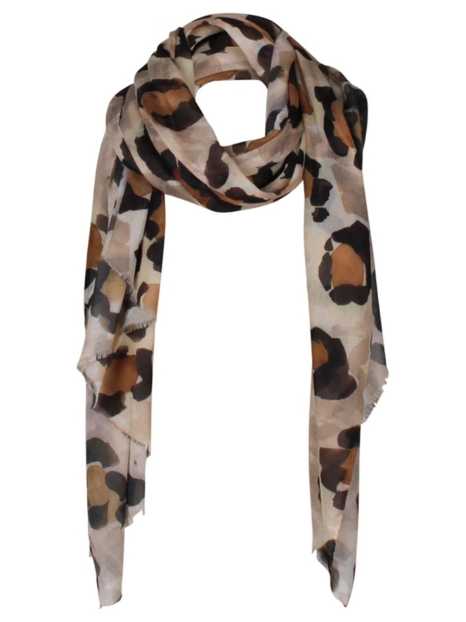 Deze mooie dunne sjaal heeft een grote panterprint. Hij is van 100% polyester met een afmeting van 90 x 180 cm.