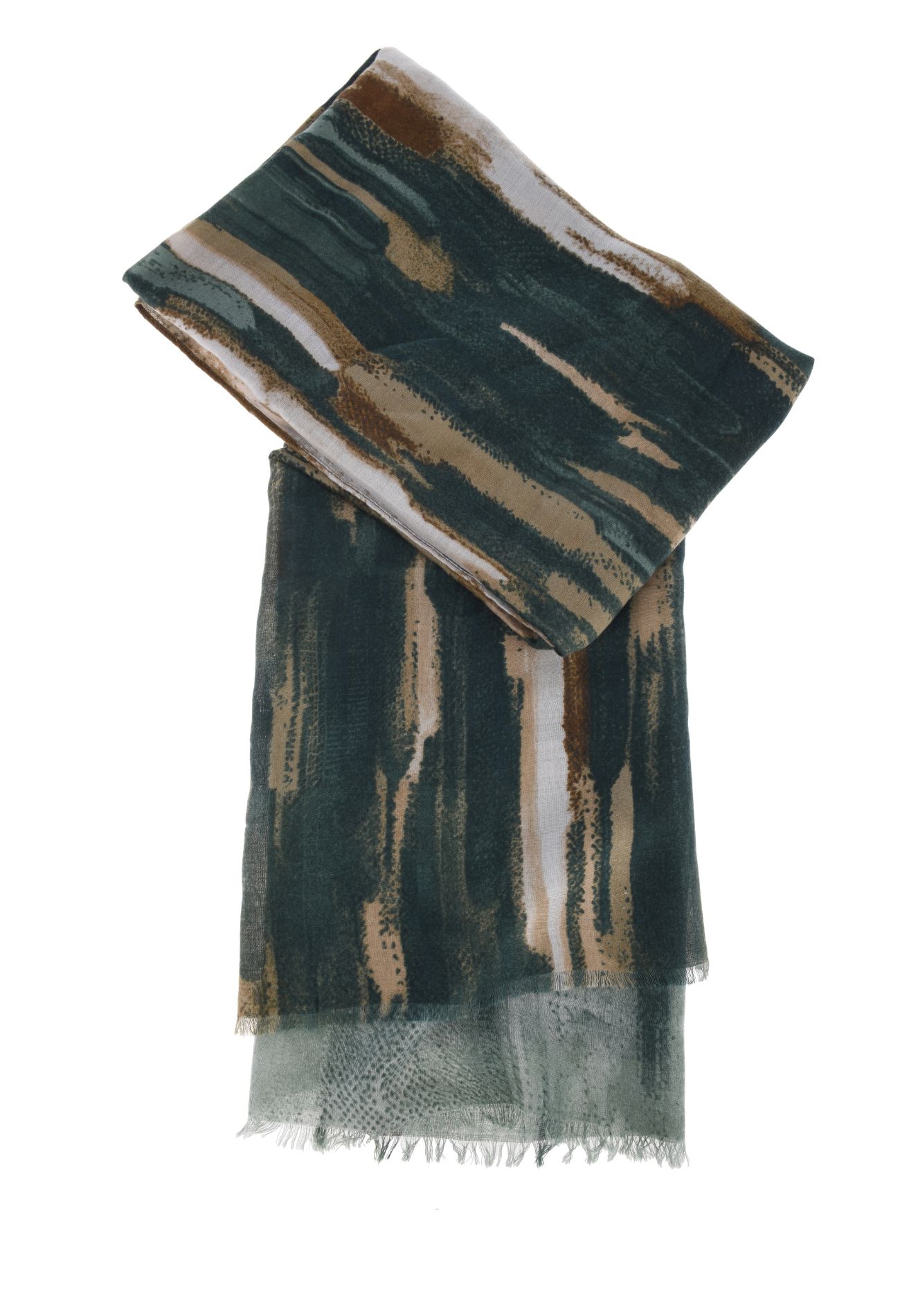 Deze sjaal heeft vage vegen en een afmeting van 90 x 180 cm.