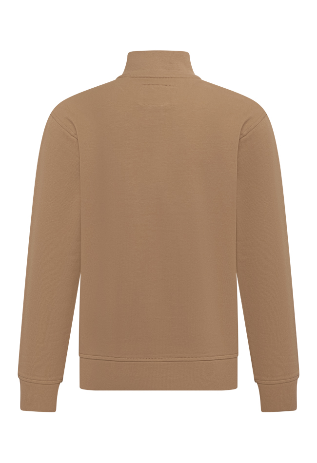 Is het een sweater of een vest? Wat ons betreft kan het beide! Dit sweater vest met een kleine rits heeft een fijne opstaande kraag met een kleine logo print op de voorkant.