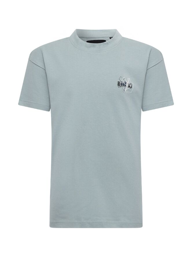 Fijn T-shirt met een opstaande hals die net wat warmer afkleed dan een zomers shirt! Dit shirt heeft een grote print op de rug en een kleintje voorop. Draagt leuk onder een shacket of overshirt.