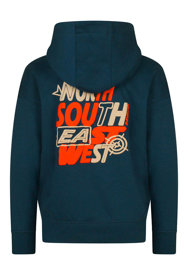 Hoody! Deze hoodysweater met kangeroezak heeft een grote print op de rug. North South East West!