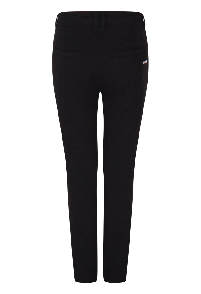 Nette pantalon met een sportieve touch! Deze lange broek met gewone rits met knoop sluiting heeft ook een sportief koordje en is aan de binnenkant in de tailleband verstelbaar. Deze broek groeit dus gewoon een stukje met je mee! Handig!