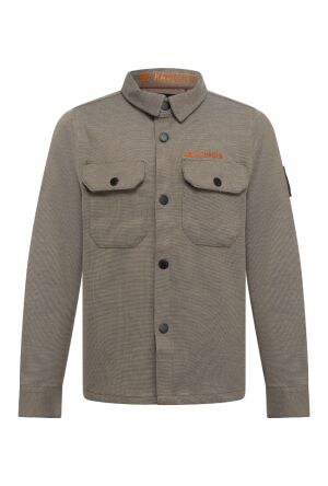 Stoer jack voor jongens in een overhemd model. Het jack wordt gesloten met drukknopen, heeft twee klepzakken op borst hoogte en op de mouw zit nog een embleem.