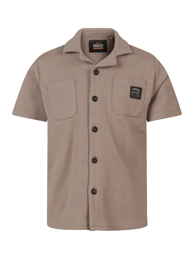 Dit stoere jongens overhemd van Ravagio is ideaal voor een casual én feestelijke look. Gemaakt van zachte wafeldoek voelt het comfortabel aan en heeft het een lichte structuur voor een moderne uitstraling. Het overhemd heeft een regular fit, korte mouwen en een polokraag voor een tijdloze en stijlvolle look. De borstzak en de contrastkleurige knopen geven het ontwerp extra karakter. Het overhemd is makkelijk te combineren met de bijpassende korte broek (Z10228) voor een complete, coole outfit of met jeans voor een casual look.