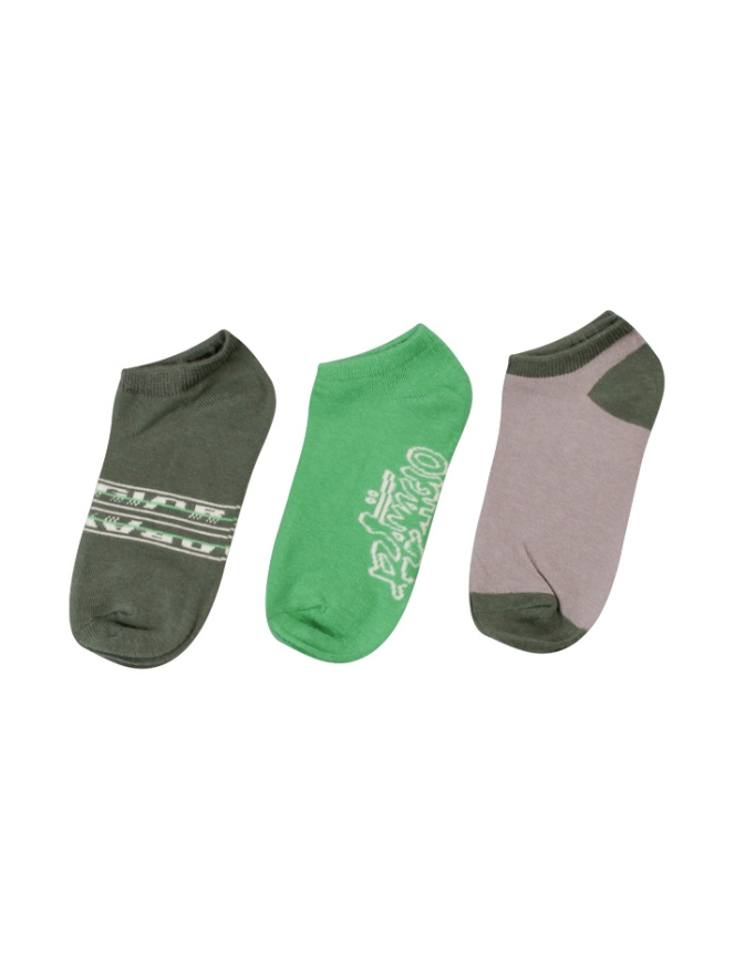 3-Pack enkel sneaker sokken. 2 Paar met tekstprint, 1 paar met gekleurde hiel en tenen.
