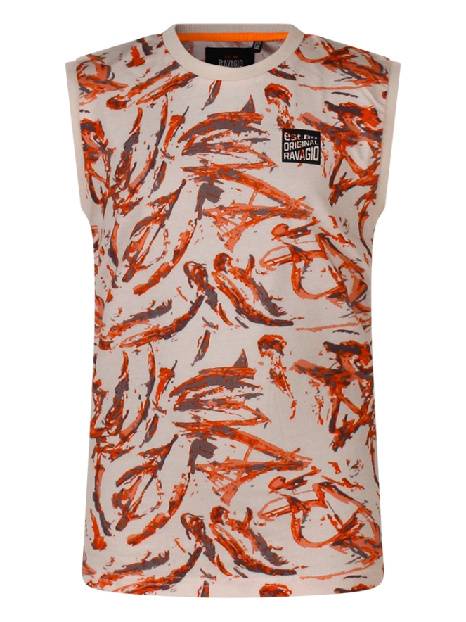 Stoer jongens singlet van Ravagio met een all-over vegenprint en opvallende opdrukken op de borst en rug: ?EST. 89 Original Ravagio?. Gemaakt van een zachte, comfortabele stof.