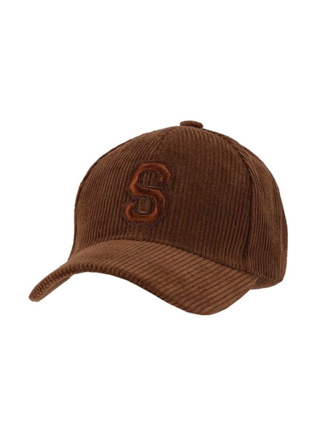 Fraaie ribcord pet met geborduurd embleem voorop.