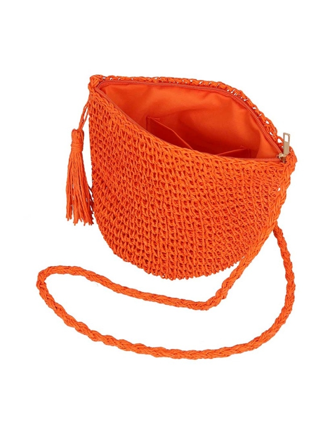 Kleine gevlochten heuptas van Sarlini. Deze tas kan gesloten worden met rits en heeft een schouderband.