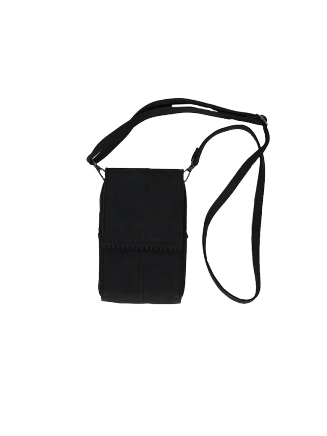 Telefoon tasje met verstelbaar hengsel welke ook afneembaar is. Het tasje wordt afgesloten met een rits en de klep sluit met een magneetsluiting.