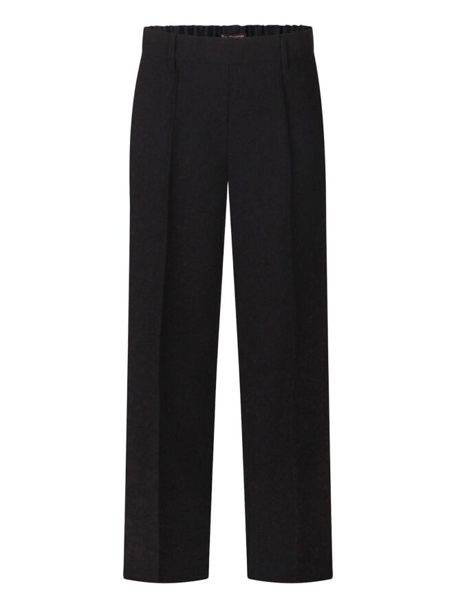 Deze damespantalon combineert comfort met een nette, moderne look! De opnaad aan de voorkant geeft de broek een scherp en gestroomlijnd effect, terwijl de rechte pijpen zorgen voor een tijdloos silhouet. Dankzij het elastiek aan de achterkant van de tailleband zit de pantalon extra comfortabel en sluit hij mooi aan.