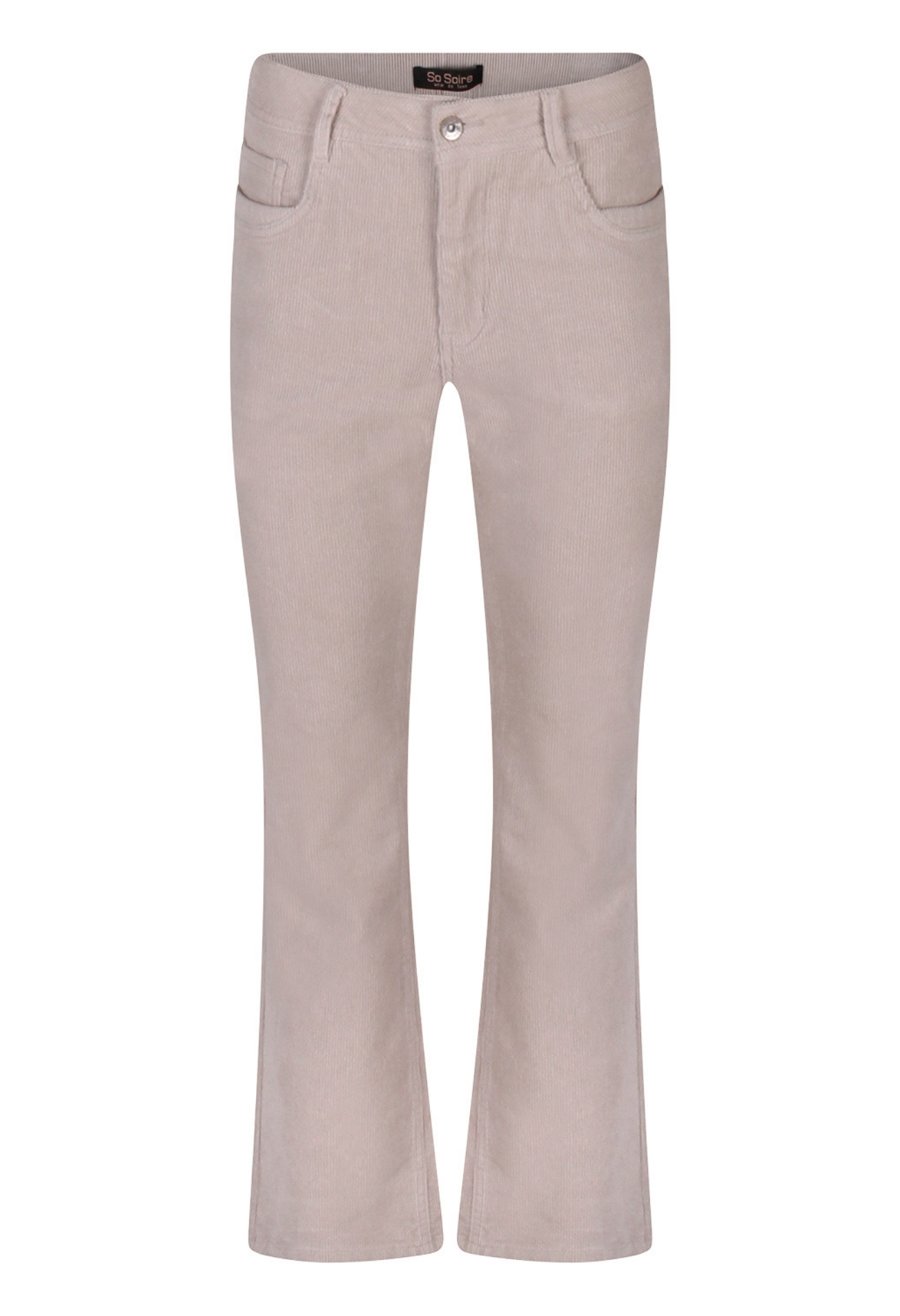 Deze dames broek is gemaakt van een zachte corduroy stof en uitgevoerd in een klassieke 5-pocketstijl. De flared pijpen en de lengte van 31 geven de broek een trendy, vrouwelijke uitstraling. Perfect te combineren met een blouse of sweater voor een stijlvolle everyday look.