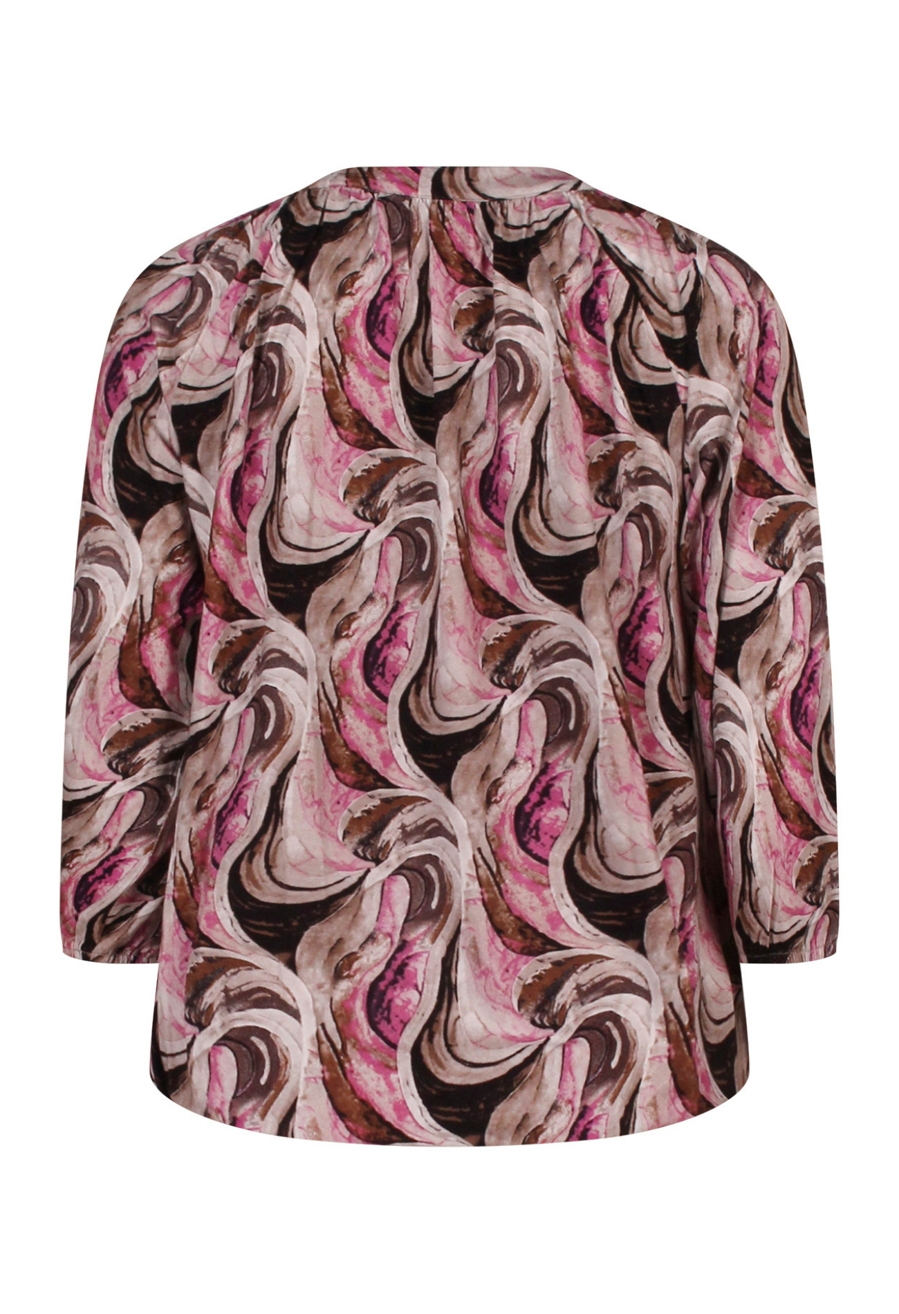 Deze dames top is gemaakt van een comfortabele viscosemix met een speels dessin. Het subtiele mao-kraagje en de 3/4 mouwen geven de top een elegante uitstraling. Dankzij het elastiek aan de onderkant en bij de mouwen krijgt de top een licht blousend effect en een mooie pasvorm. Perfect te combineren met een jeans of rok voor zowel een casual als een meer geklede look.