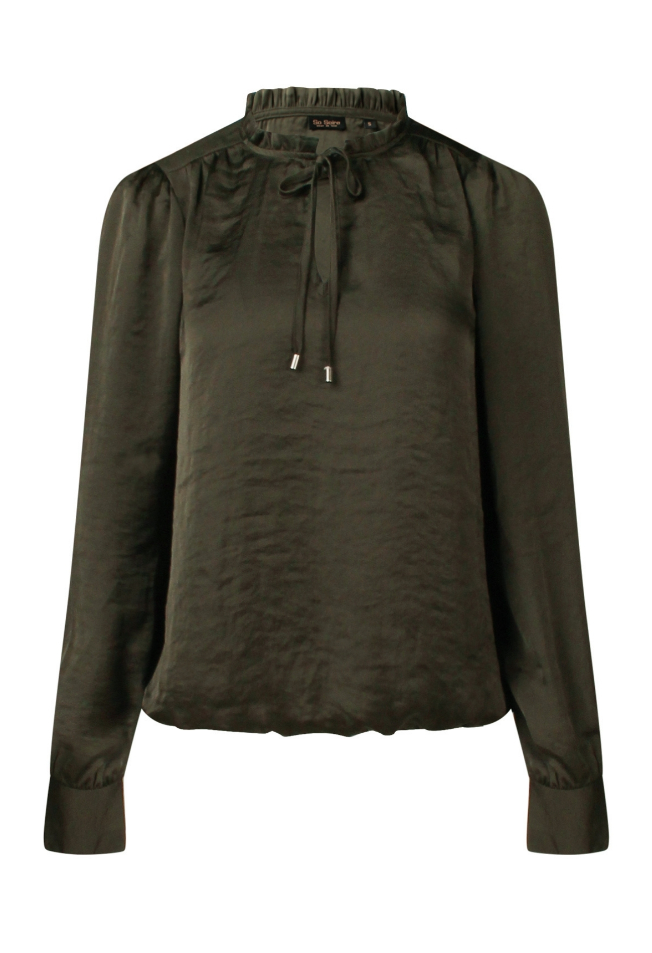Deze satijnen look top heeft een luxe uitstraling door de stof. Met leuke details zoals de ruche rond de hals, het koordje en het elastiek in de taille. Je combineert deze mooie blouse eenvoudig met een nette pantalon en blazer. Hou je meer van casual? Hij doet het ook goed op een mooie jeans!