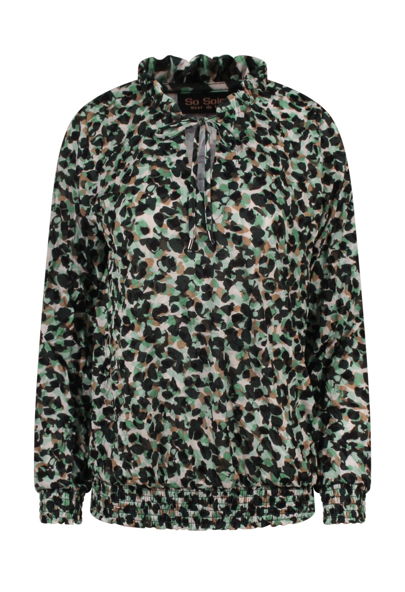 De gesmockte details zorgen voor een speelse en vrouwelijke touch, terwijl de stof comfortabel en soepel draagt. Een echte eyecatcher die zowel casual met een jeans als stijlvol met een rok of pantalon gedragen kan worden.