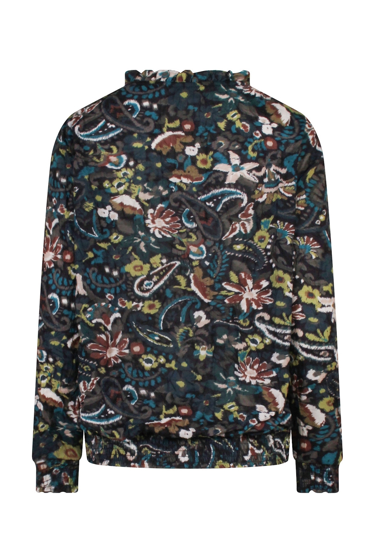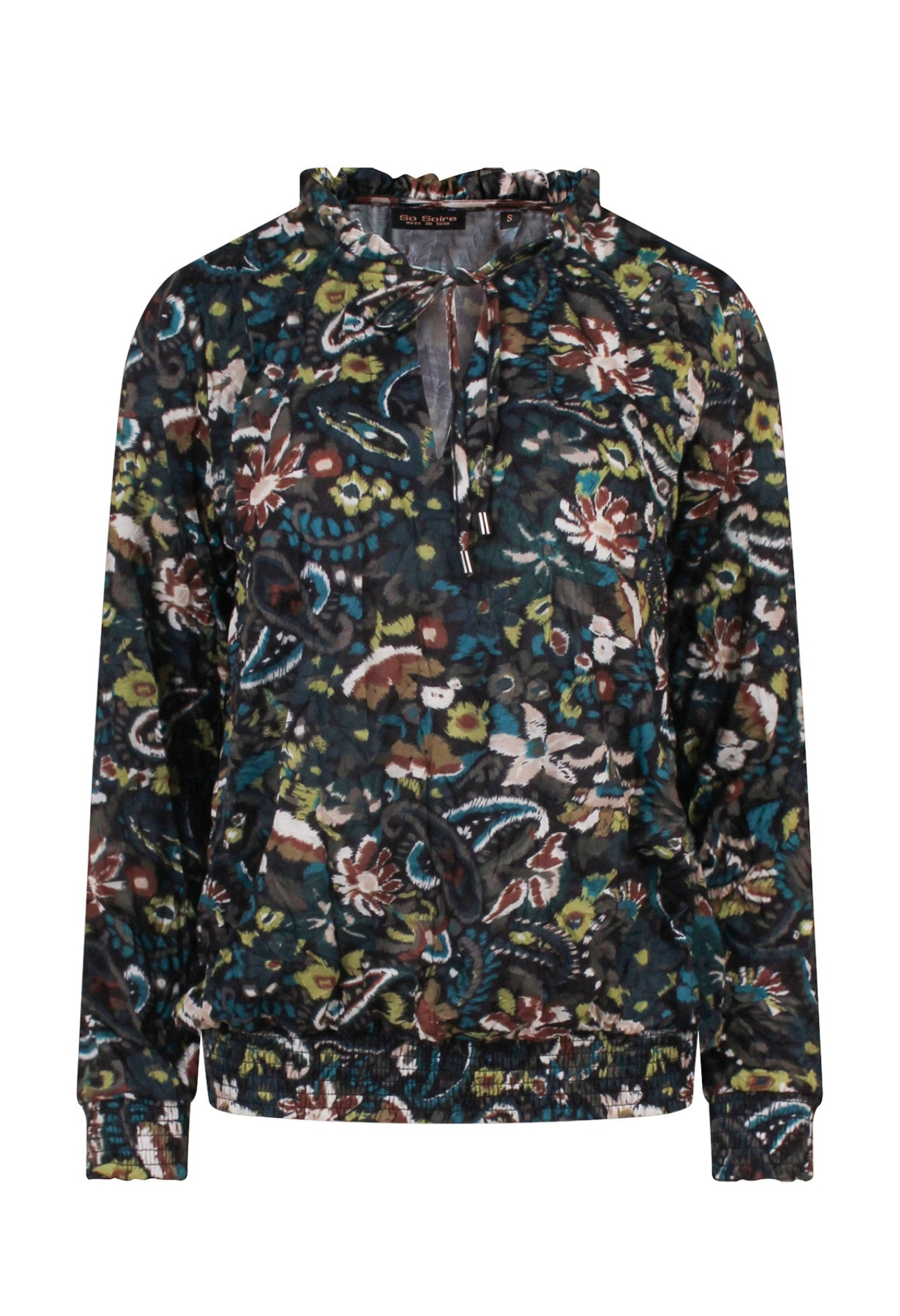 Deze dames top is gemaakt van een luchtige pol crush stof en heeft een prachtig bloem- en paisleydessin dat zorgt voor een speelse en vrouwelijke uitstraling. De ruches en gesmockte details geven de top een elegante en trendy touch. Dankzij de lichte, comfortabele stof is dit item perfect voor een zomerse dag. Combineer de top met een jeans of rok voor een stijlvolle look, of draag hem met de bijpassende broek voor een complete set.