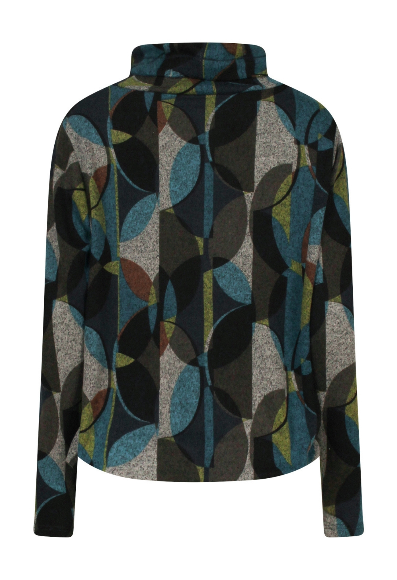Deze trui is geen dikke maar een dunner exemplaar en heerlijk zacht! Met een fijne col en een mooi cirkel patroon is deze trui net even anders dan je gewend bent! Onder in de taille zit een koordje welke je makkelijk wat strakker kan zetten als je hem wat wilt laten bollen.