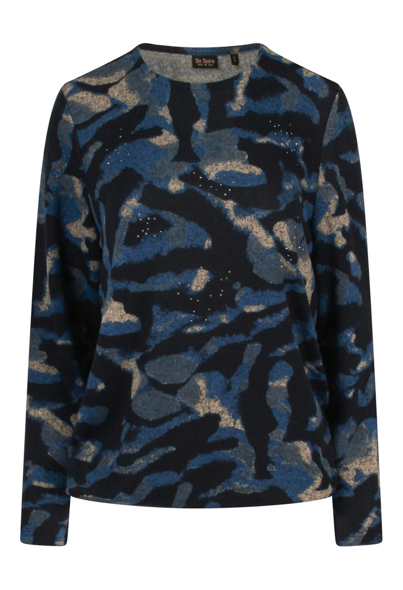 Deze zeer fijn gebreide top heeft een wolken design met hier en daar strasstenen. Onder in de taille zit een koord welke strakker gezet kan worden om het shirt bijvoorbeeld iets te laten bollen.