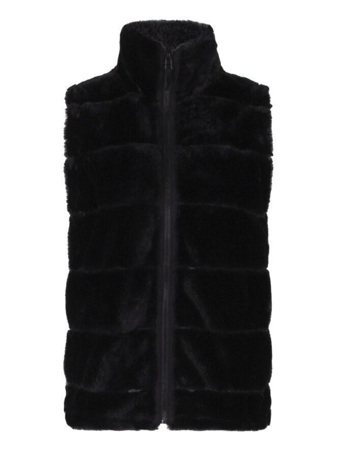 Heerlijke fake fur bodywarmer met streep. Deze bodywarmer is ontzettend zacht en laat zich goed combineren over een mooie top, effen of met print. Met een fijne col is dit jouw nieuwe beste vriend!
